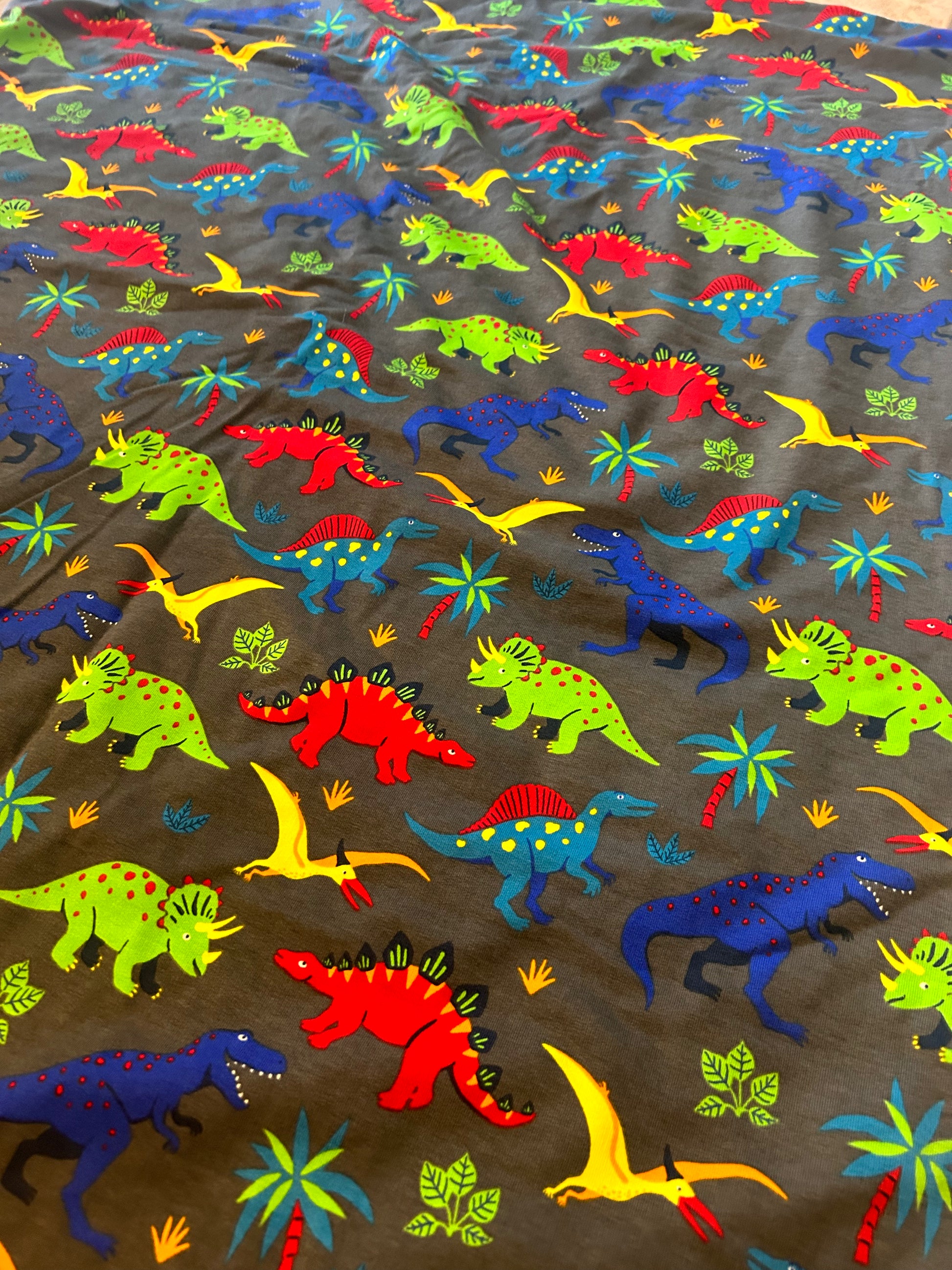 Couverture de couleur verte d'un coté avec des dinosaures et marron de l'autre coté pour pouvoir couvrir bébé au moment de la sieste.